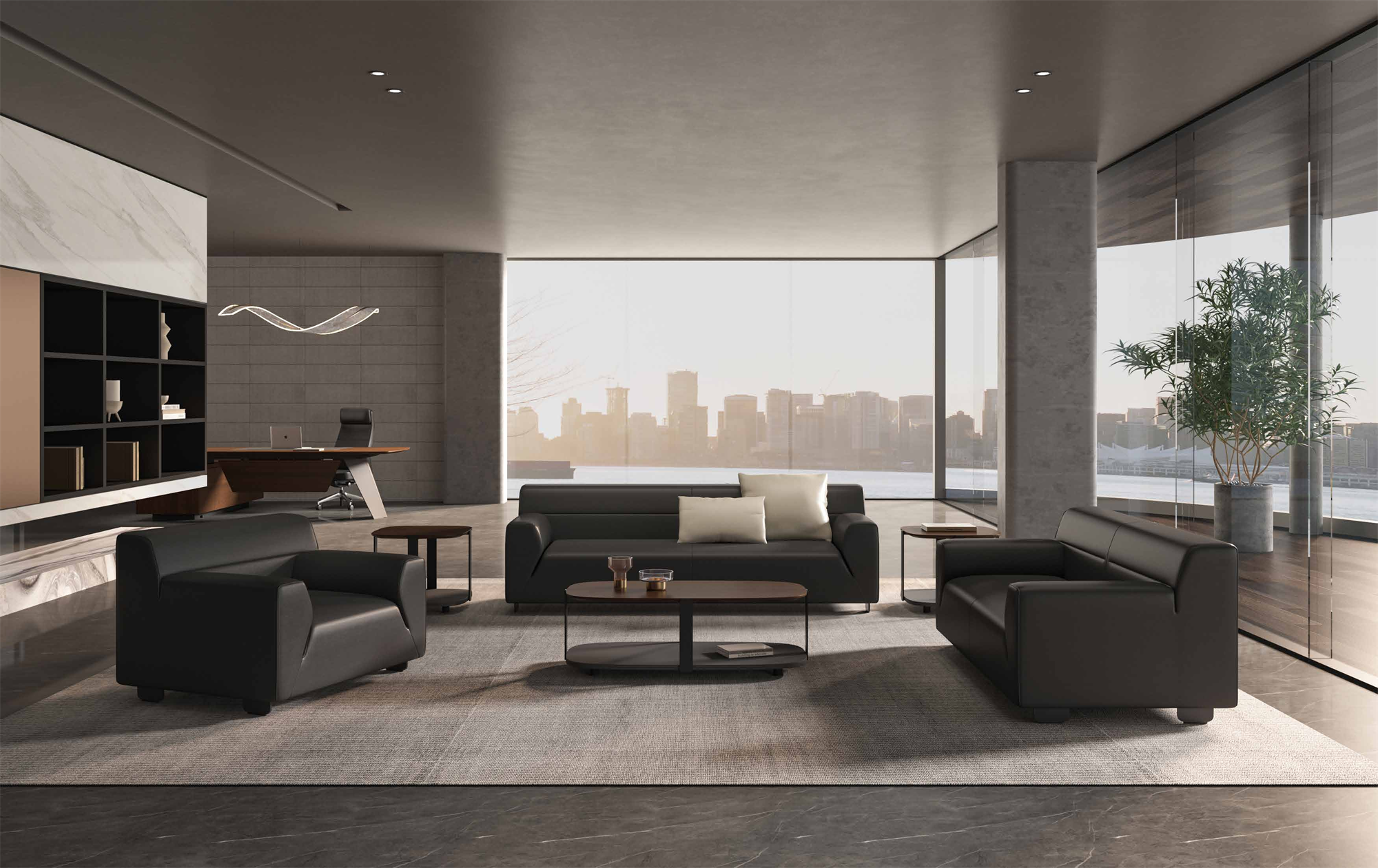 Luna 沙发融合“回水湾”设计,寓意聚水成财。