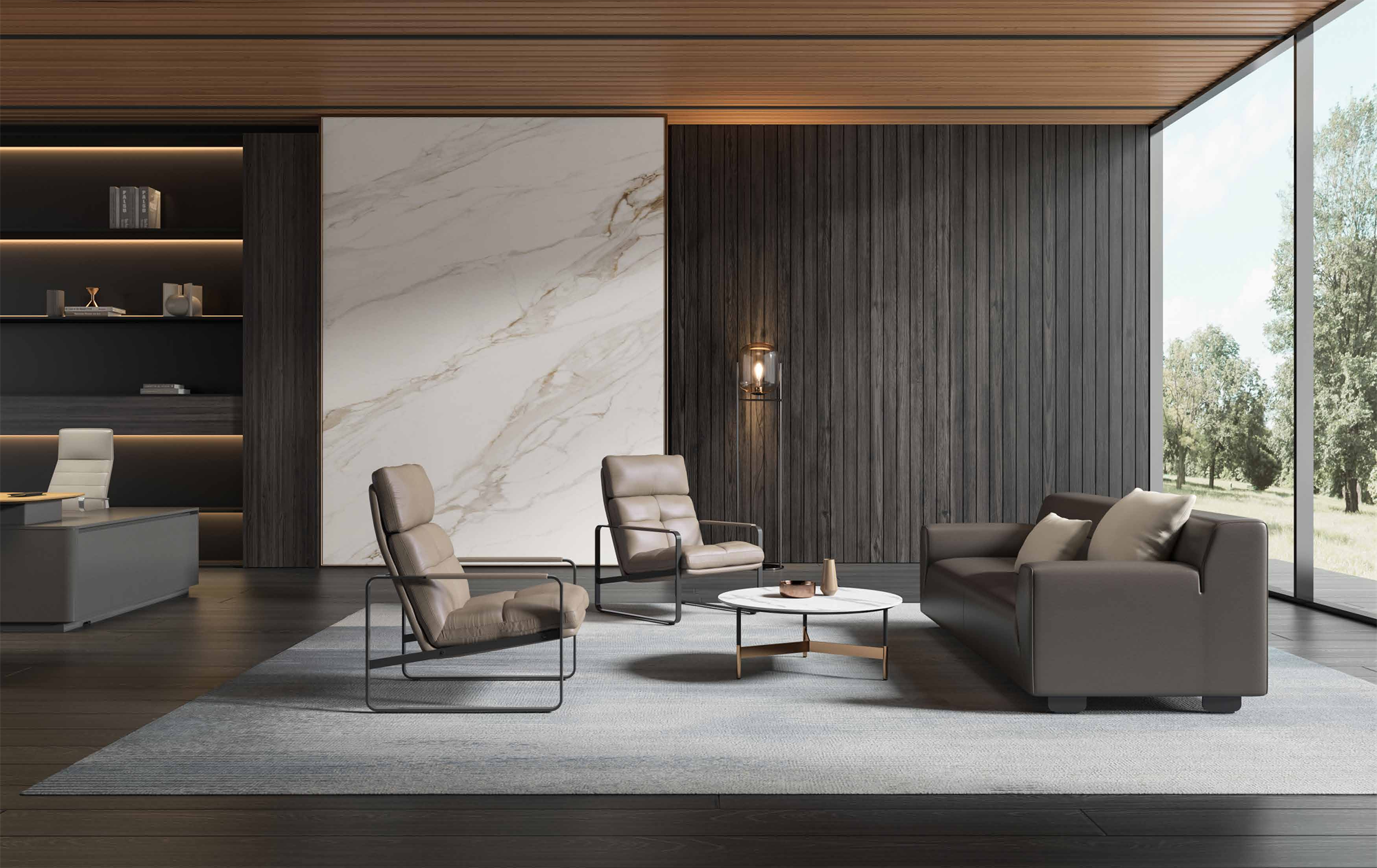 Serena源自拉丁语,意为“欢乐与平静”。这款沙发以休憩为核心设计理念,造型端庄大方。它能悄然贴合身体,缓解疲劳,隔绝外界纷扰,成为办公场景中一处温暖角落。